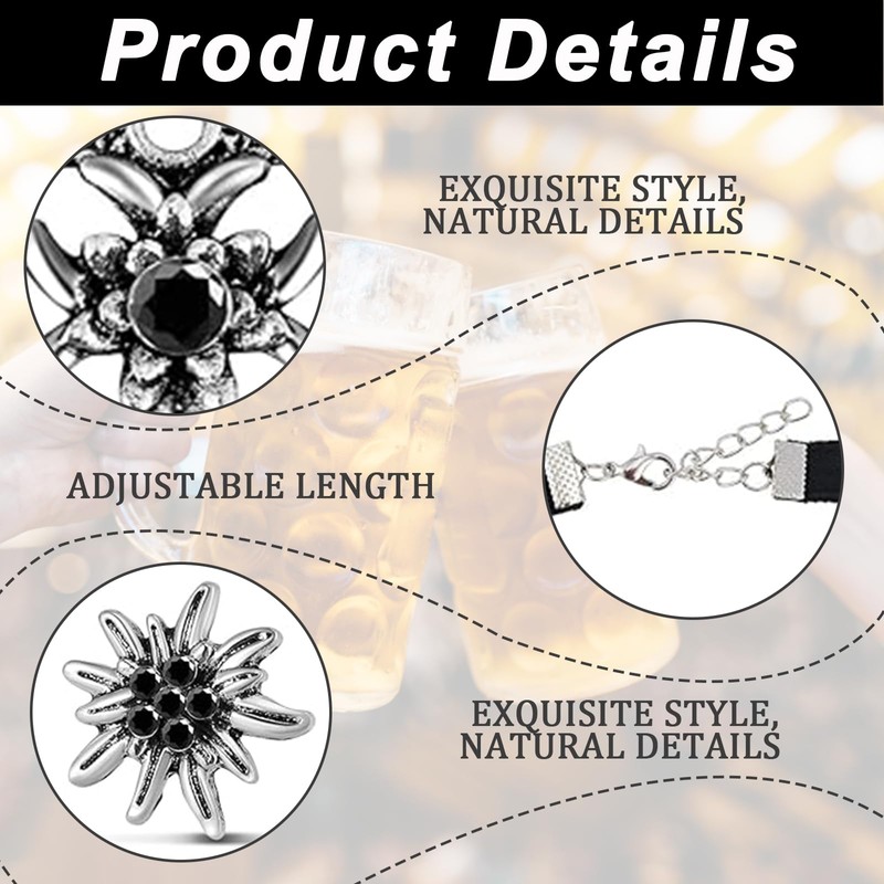 - Vielseitig für festliche & alltägliche Looks: Ob Wiesn, Hochzeit oder Abendessen – das Dirndl Schmuck-Set passt zu jedem Anlass. Trachtenschmuck damen die klassischen Edelweiß-Elemente und Strass-Verzierungen ergänzen nicht nur Trachten, sondern auch elegante Alltagsoutfits.
