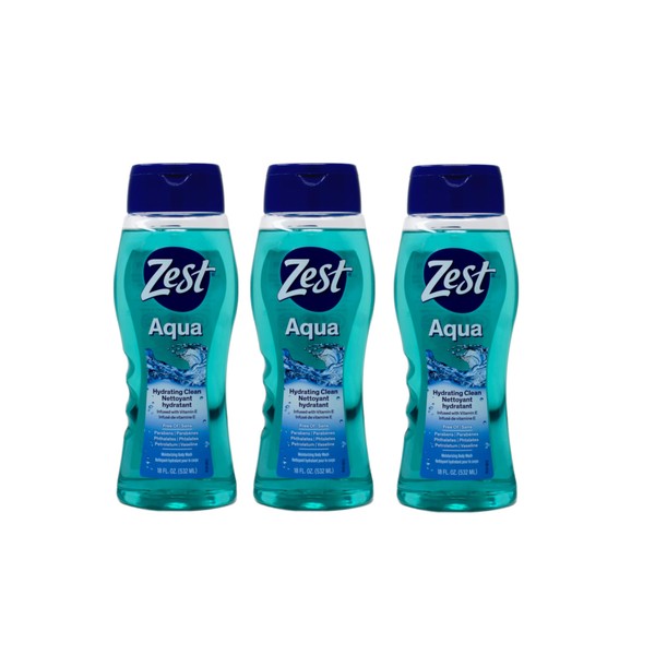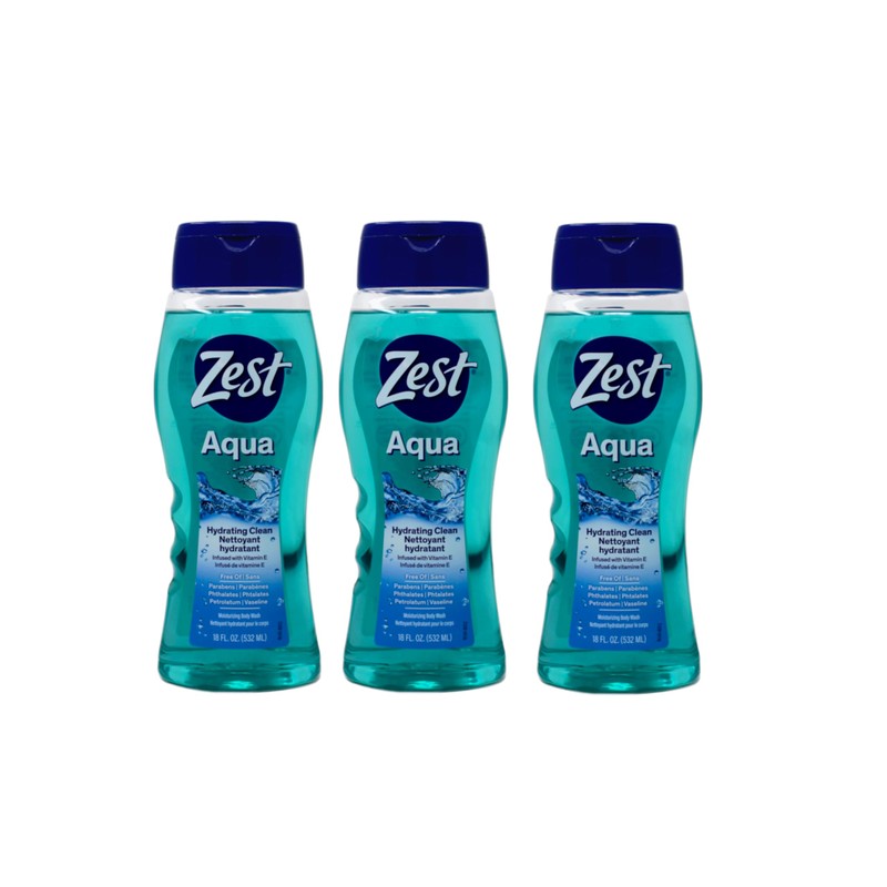 Zest Body Wash Aqua with Vitamin-E Hydrating 18 Ounce (Pack of 3)