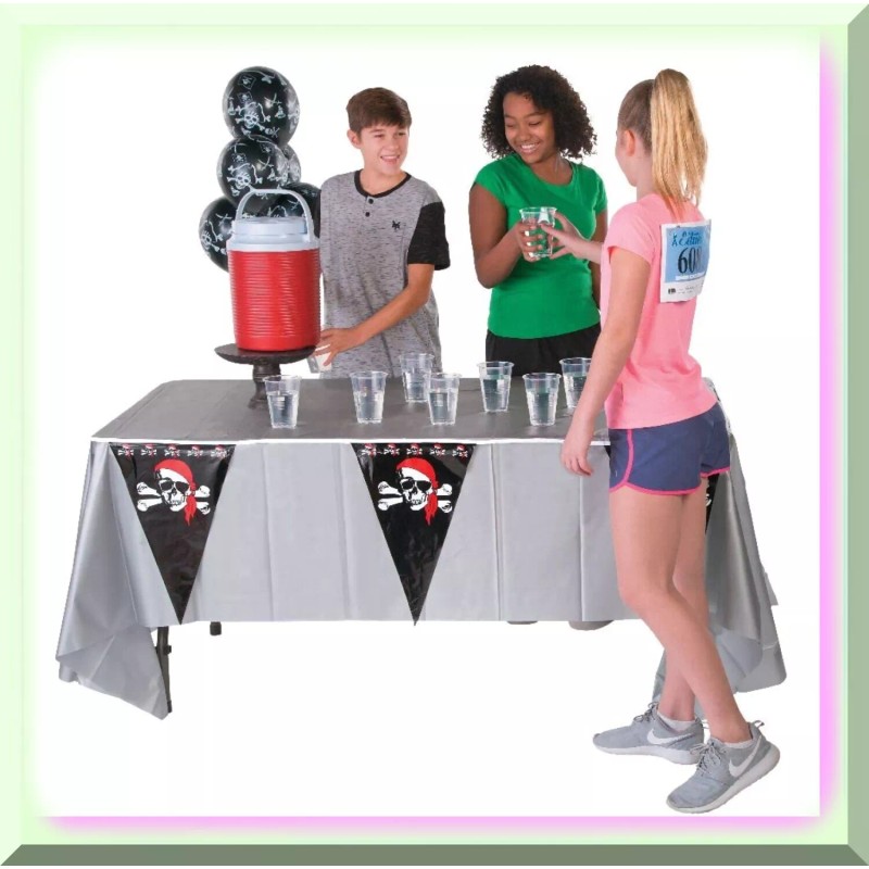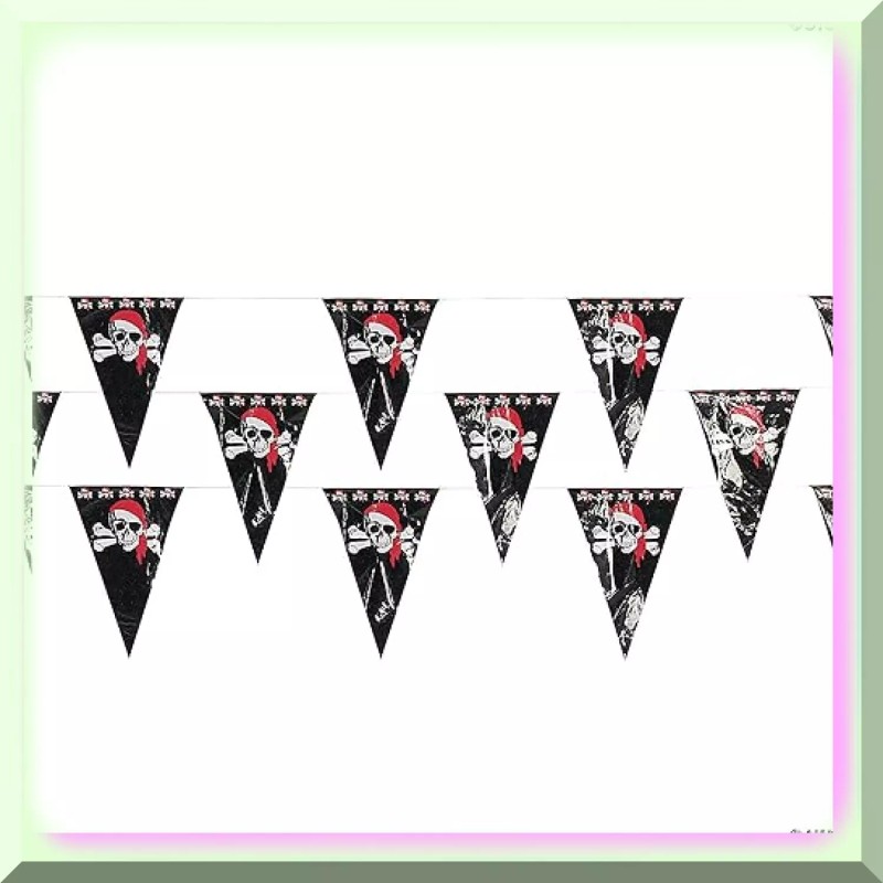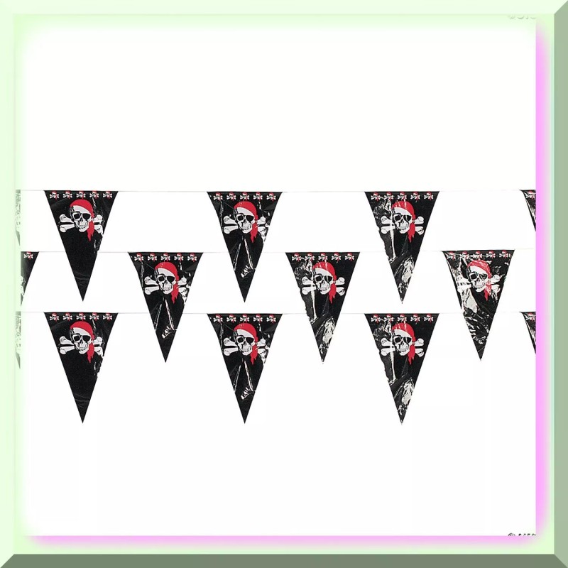Ahoy, matey! Transform your pirate ship soirée with these fearsome Pirate Pennant Banners, adorned with skull and crossbones! This dashing pennant banner boasts a staggering 48 plastic pennants, each measuring 1 foot by 18 inches. Spanning an impressive 100 feet, it's the perfect addition to any buccaneer bash!