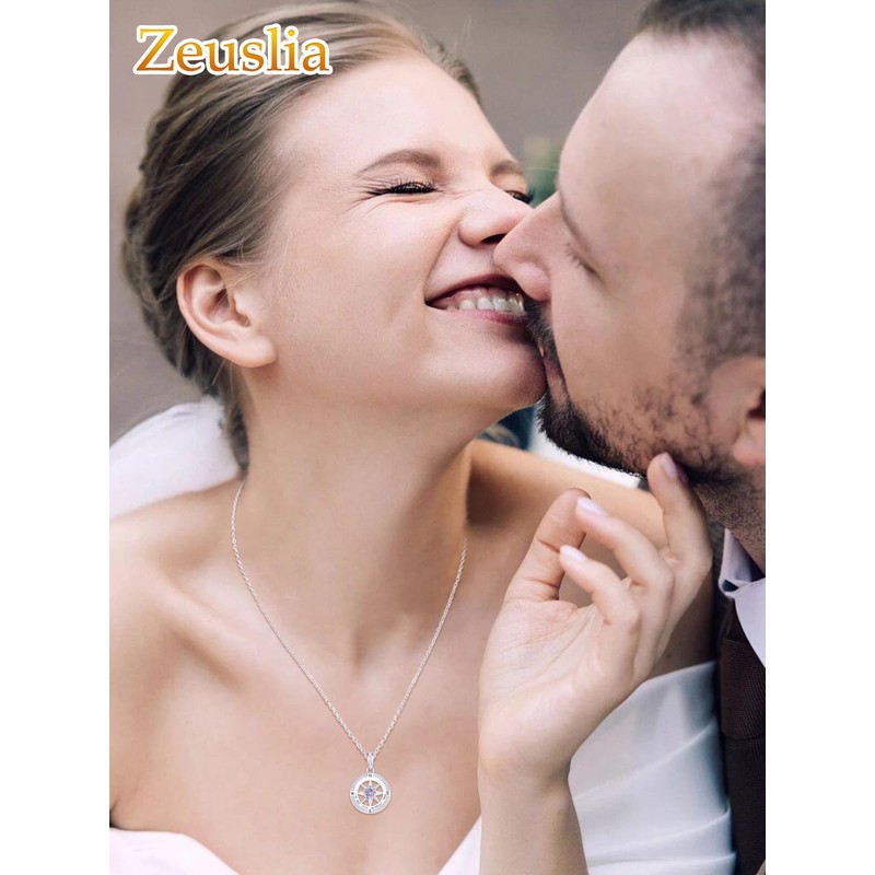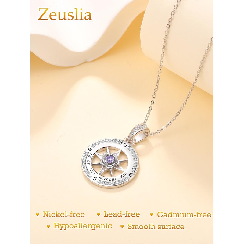 Zeuslia S925 Silver Compass Necklace for Women, Without You Would Be Lost Jewellery, Mum Birthday Graduation Anniversary Gift, Girlfriend Daughter Necklace with Birthstone Pendant, Sterling Silver