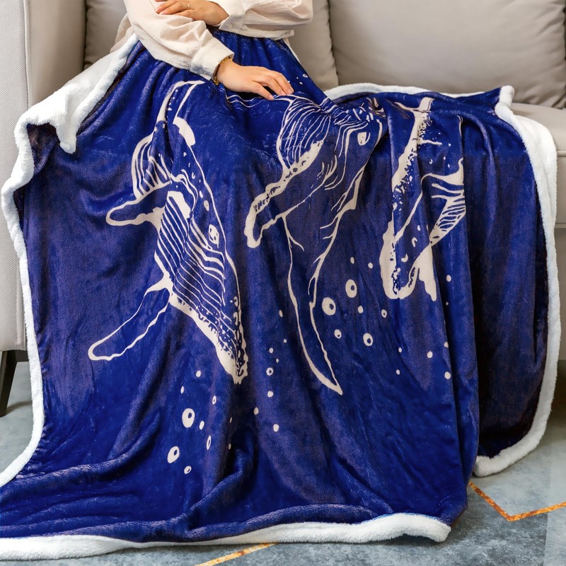 - PRIME MATERIAL: High quality whale blanket made of flannel fleece and coral velvet; super soft like cuddling with a cloud; lightweight but enough warm without too hot