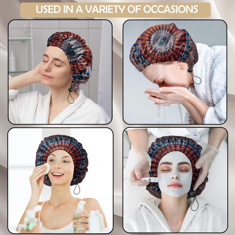 - 【Applicable】This reusable waterproof shower cap hair bonnet can be used in facial care, hair care, make-up, SPA, cooking, and household cleaning in addition to shower and bath.