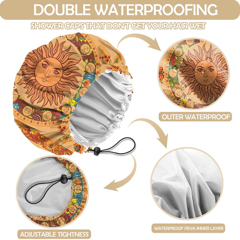 - 【Double-Layer Waterproof】The shower cap is made of double-layer EVA fabric.It's a shower cap that really doesn't wet your hair.