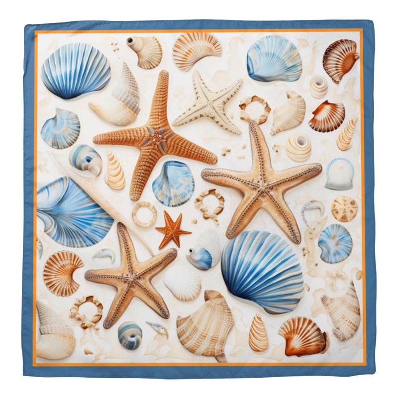 Zewurtuw Scarf Silk Feeling Large Square Satin Head Hair Wrap Lightweight Fashion Cute Aesthetic 27.5 Inches for Women Girls Handbag Decoration-Sea Shell