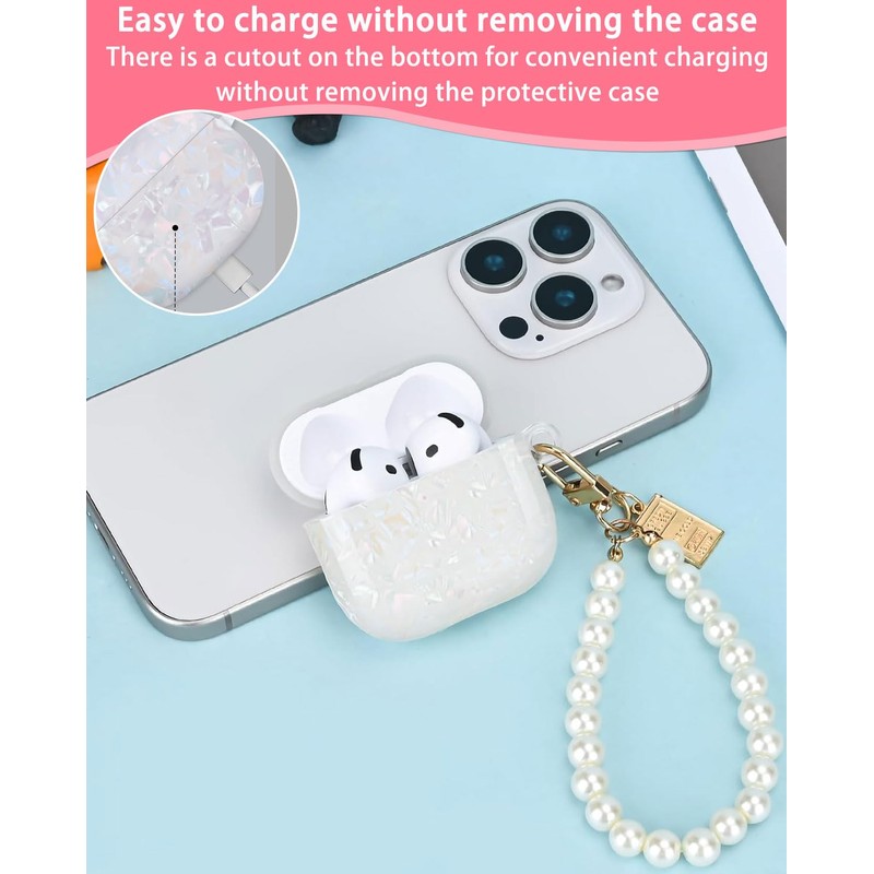 - Practical and stylish: the AirPods charging case comes with a chic pearl key chain, which can be easily hung on keys, belt or backpack. The charging case is not only a fashion accessory, but also ensures that your AirPods are always ready to use and meet your daily usage requirements. Very suitable for taking with you