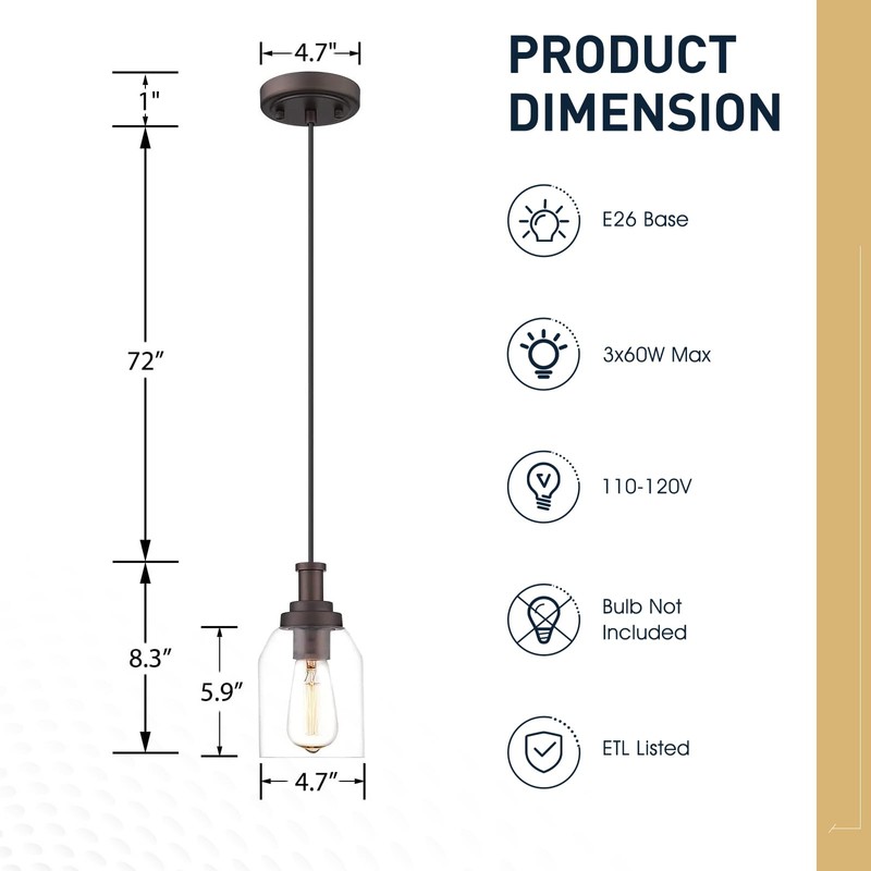 - 【INDUSTRIAL & VINTAGE】: Featuring vintage industrial design, these farmhouse pendant lights are made of sturdy metal construction in an oil rubbed bronze finish and clear glass shade, perfect for any style and ambiance.