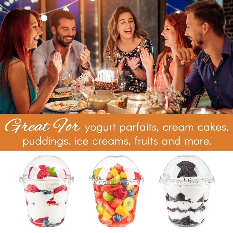 - PERFECT FOR COMMERCIAL & PERSONAL USE: These clear plastic cups would be best choice for ice cream shop, bakery, fast food restaurant, carnivals, parties, weddings, gatherings, BBQ, picnics or any other event. Your dessert or drinks will appear more delicate and delicious in these crystal clear containers.