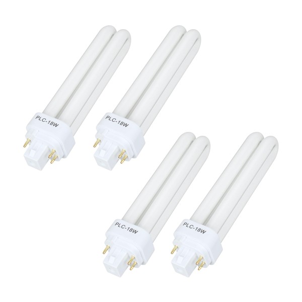Zfegto FDS18E35/4 CFL Light Bulbs for Panasonic, 4 Pin G24q-2 Base 18W 3500K Double Tub, Compact Fluorescent Light Bulbs 4Pcs
