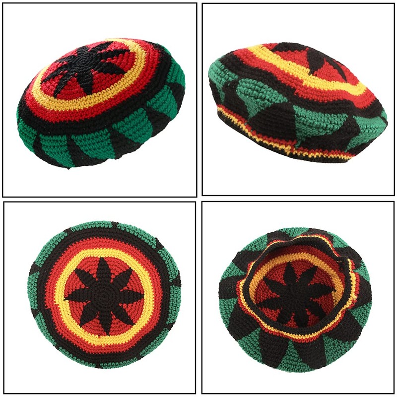 ZffXH 1/2 Pcs Wool Knit Rasta Hat Reggae Jamaican Cap Colorful Slinky Visor Beanie Hat Slouchy Baggy Cap