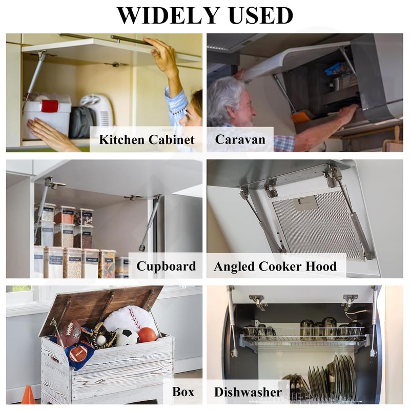 More choice of models, more precision: 40N / 60N / 80N / 100N / 120N / 150N/200N gas struts sufficient for most sizes of cabinets.