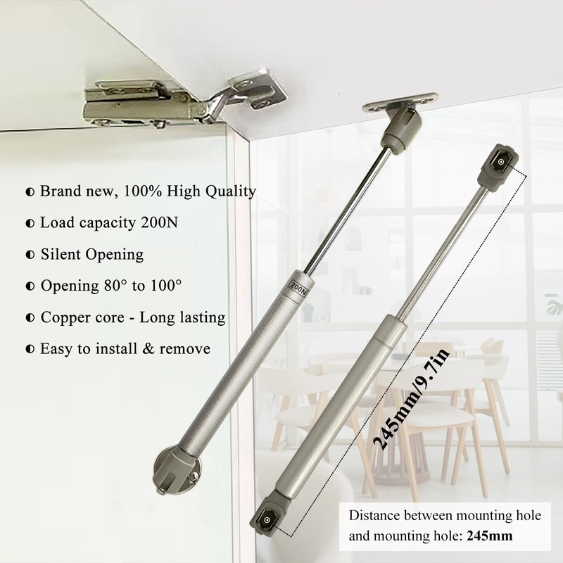 - 【INSTALLATION STABILITY: 】Gas strut kit's metal fasteners allow for a larger contact area between the cabinet and the hinge, the three-point positioning makes for a more stable installation and greater load capacity. The mounting position can be adjusted as needed (see paper manual ).