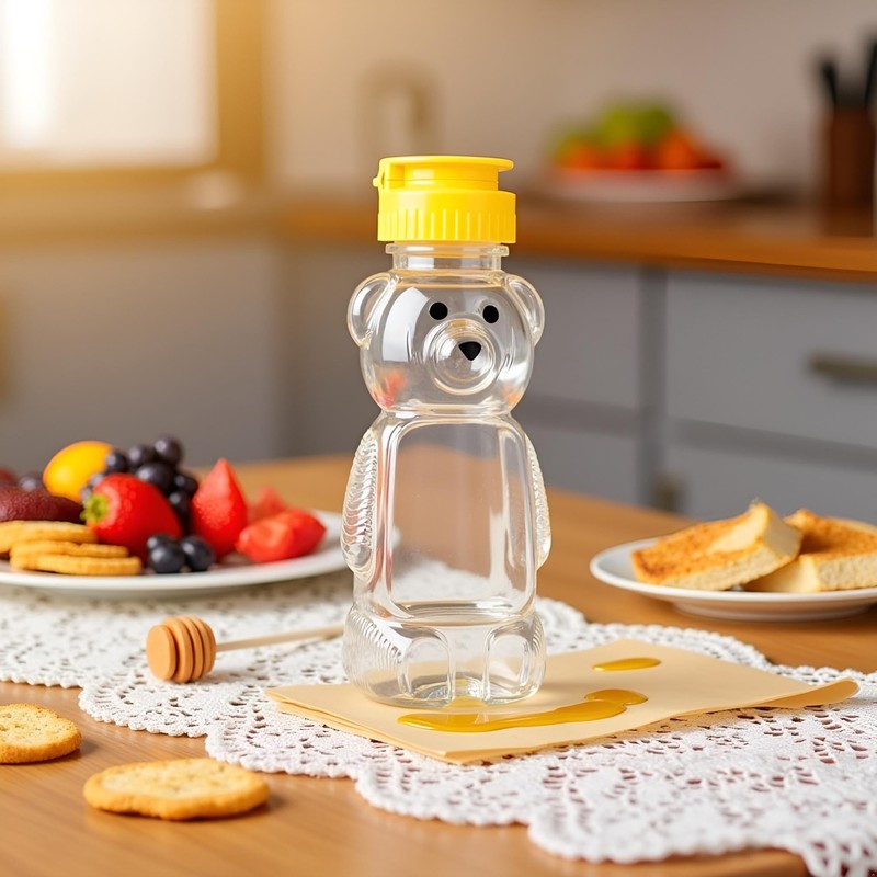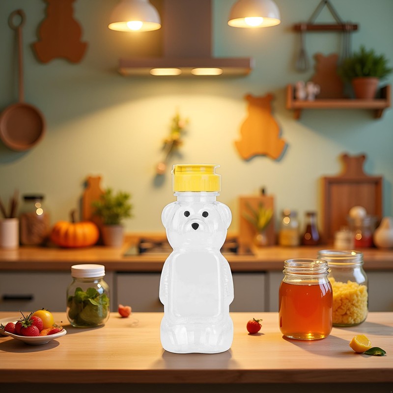 - CAPACITY: 240ml (8 oz) honey container with bear-shaped design, perfect for storing and dispensing honey and other liquid condiments