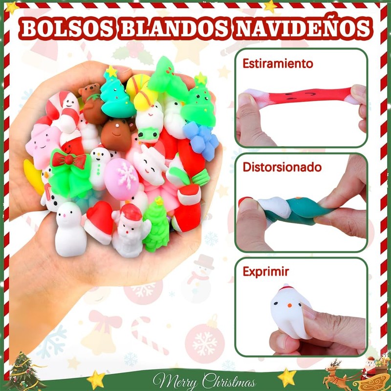 - 🎅【Regalo perfecto】Los juguetes mochi de tamaño mini son fáciles de llevar y perfectos para los regalos de Navidad de los niños. Puede aliviar el estrés y liberar la ansiedad, por lo que es un regalo perfecto para personas con TDAH, autismo y ansiedad.