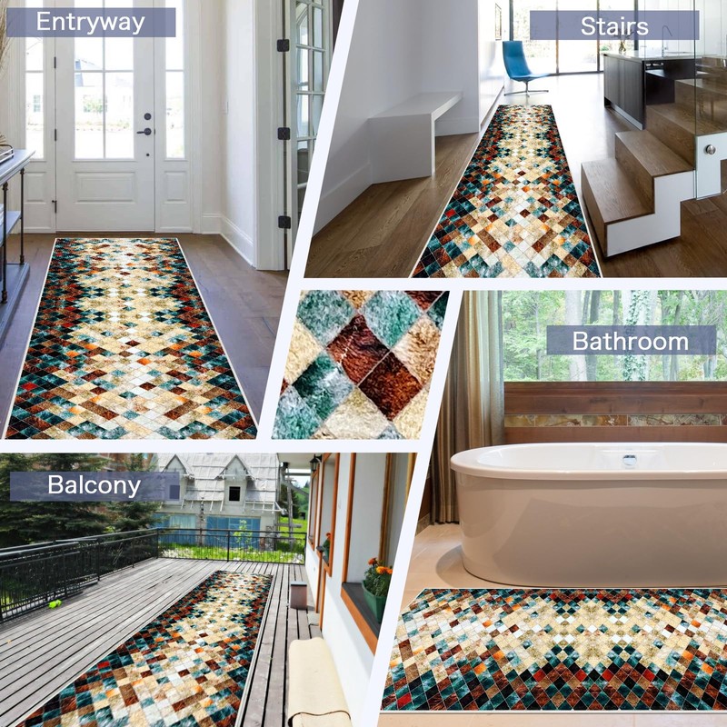 - Non-slip Backing: The runner rug stay in place without any movement on the floor, the rubber backing keep it in place well. Our carpet can also prevent pets' paws scraped against the floor.
