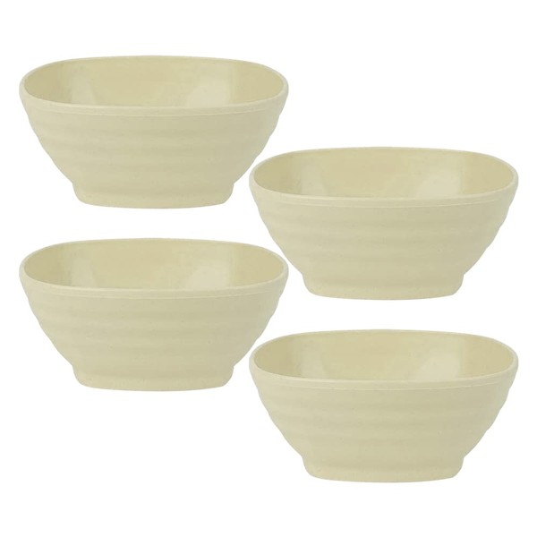 Zgwansui 20 OZ Unbreakable Cereal Bowls Set of 4, Wheat Straw Fiber Rice Bowl, Reusable Square Soup Bowls, Stackable Pinch Bowl for Side Dish Noodle Oatmeal Salad, Dishwasher Safe (Beige)