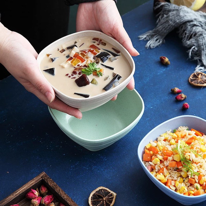 ※ Lightweight and Nonslip to Hold: Plastic cereal bowls are light to hold. Square bottom and textured body make the rice bowl stable and will not tip over easily.