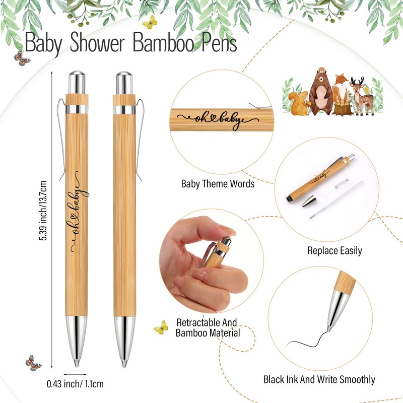 - A Bounty of Delight: specially prepared in abundant quantity, our package includes 50 pieces of baby shower bamboo pens, 50 pieces of baby shower cards, and 1 pack of silver cable ties; These baby shower favors not only suffice for daily use and replacements but also ideal for you to share with your guests as a thoughtful gesture