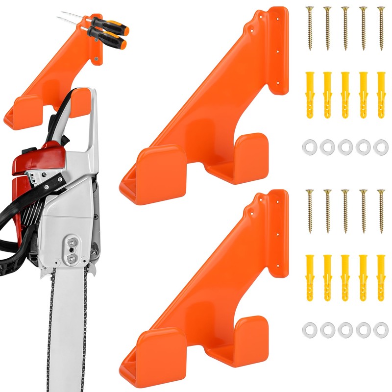 - 𝐌𝐮𝐥𝐭𝐢-𝐃𝐢𝐫𝐞𝐜𝐭𝐢𝐨𝐧 𝐌𝐨𝐮𝐧𝐭𝐢𝐧𝐠:This innovative chainsaw holder gives you two secure mounting choices, hang your saw horizontally or vertically to fit your space. The dual-hook design also keeps your chainsaw wrench and accessories neatly organized for quick access.