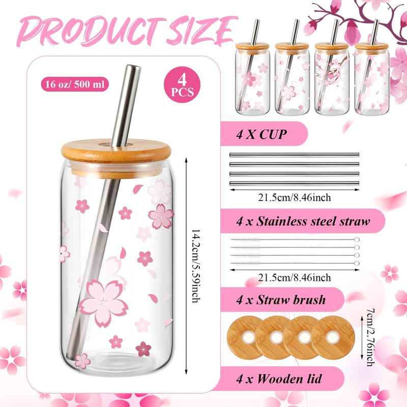 - Delicate Sakura Pattern: imprinted on these cute glass cups with lids and straws is the lovely Sakura pattern that enhances their aesthetic value; This signature design is not only visually impressive, but also adds a touch of Asian culture into your kitchenware. Enjoy your drinks in a cup that is as beautifully decorated as it is functional