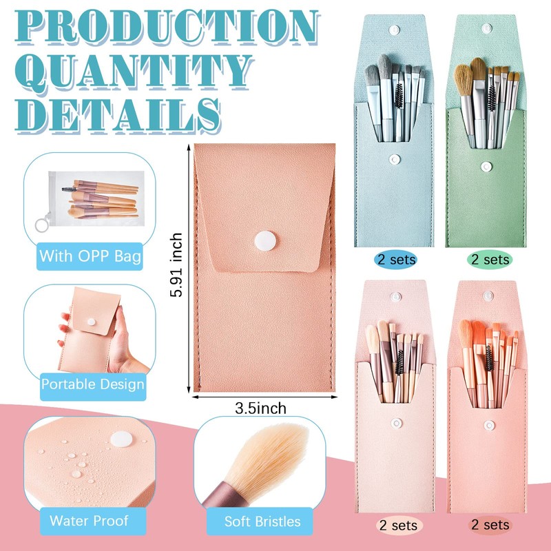 - El paquete incluye: recibirás un paquete de 8 juegos de brochas de viaje, cada juego incluye 8 brochas, como brochas sueltas, brochas para colorete, brochas para cejas, brochas para sombra de ojos y más, y con las bolsas de maquillaje, que es conveniente que guardes y llevar los pinceles