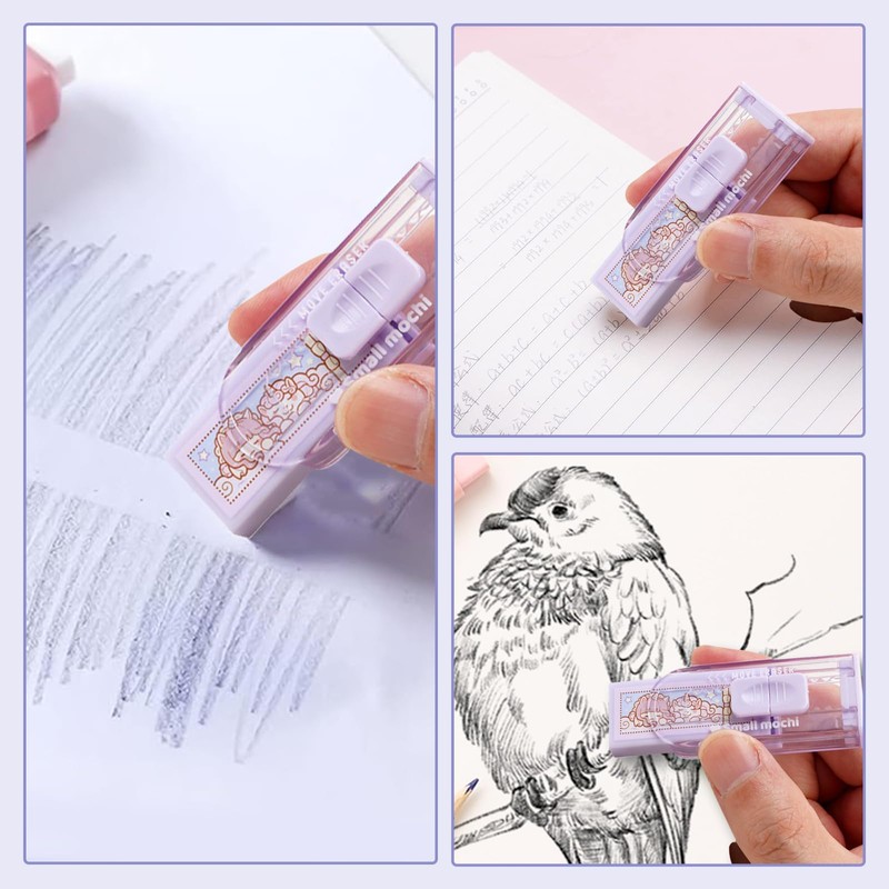 ZHEJIA Eraser Mono Eraser (Set of 2) Elementary School Eraser DIY Drawing Kids High School Students Learning Stationery Push Pull Automatic Lock Purple Blue