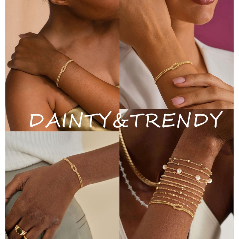 - 2PCS BRACELETS FOR WOMEN: The bracelets for women set features two chains that can be worn stacked or separately, offering versatility for any occasion. The charm bracelets contain many trendy elements, such as heart, pearl, knot and Satellite beads which its unique styles show taste and personality