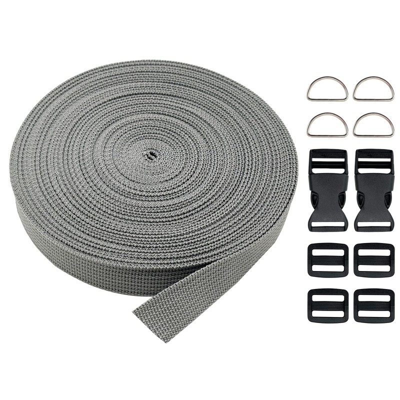 ZHFMLY Polypropylene Webbing Strap with Buckle 15 Yards 3/4" Tubular Webbing for Lawn Chairs Canvas Bag Outdoor Strapping use Luggage Indoor Handmade DIY Crafting.(Gray)