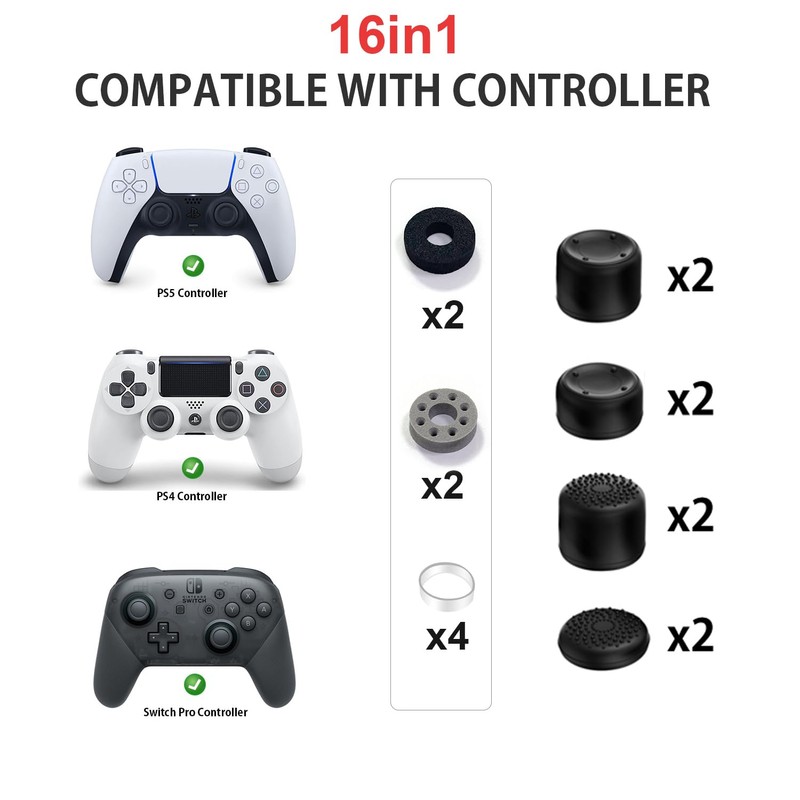 ZHI-NYLLDJS ZHI-NYLLDJS FPS Thumb Grip Gamepad Raised Antislip Thumb Stick Grips Thumbsticks Joystick Cap for PS5/4,Switch Pro Con-Precision Rings,Assist Rings,Storage Case(16pcs),Black Set