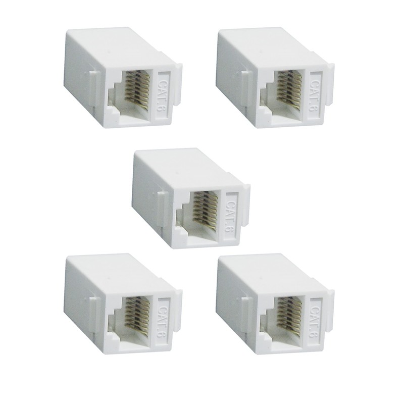 zhongguozhejianyapu 5-Piece RJ45 Coupler in-line Adapter Keystone, Female to Female Network Connector, for Ethernet CAT6 Cable Socket Panel Distribution Frame Extender, with Gold-Plated White