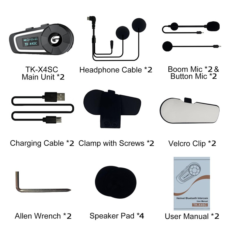- 【4 Function Modes & Music Sharing & Universal Pairing】 The TK-X4SC motorcycle intercom is equipped with a mode button, allowing riders to easily switch between 4 functional modes: Bluetooth intercom, group intercom, music sharing, and universal pairing. The music sharing mode supports 2 people to share music, which makes the journey more interesting. Both TK-X4SC can control the playback/switching music. In the universal pairing mode, the helmet Bluetooth intercom TK-X4SC can be paired with most Bluetooth intercoms/headsets (depending on product compatibility), breaking the model restrictions.(4 modes need to clear the records before using them if Bluetooth pairing has been used before)
