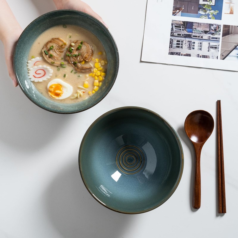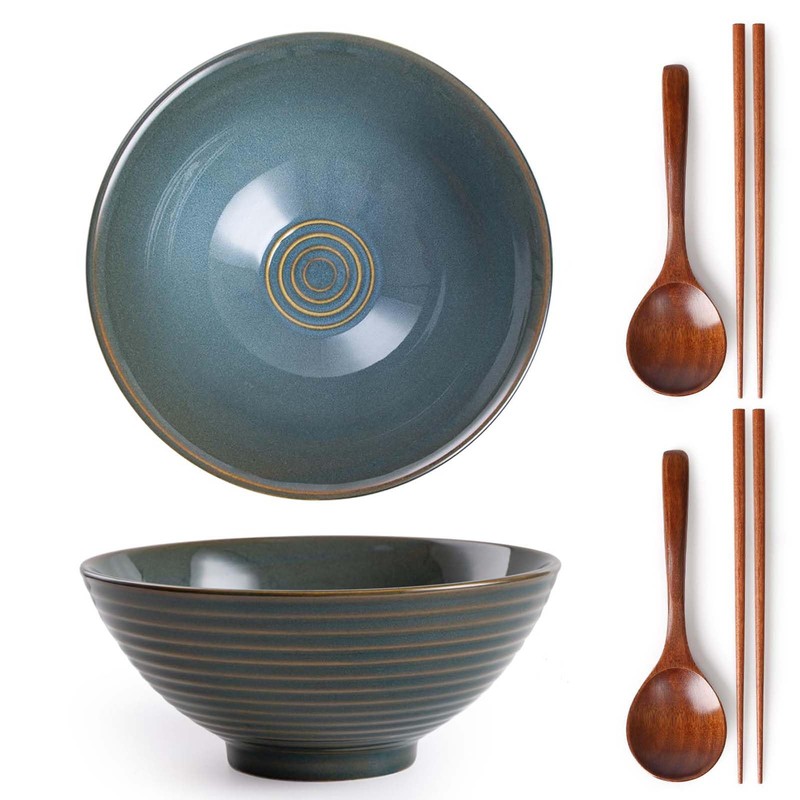 - 【VERSATILE SALAD BOWLS】2-Piece set large capacity salad bowls,These ramen bowl sets have a diameter of 8 inches, a height of 3.5 inches, and a capacity of 40 fluid ounces. They are great for Ramen, Pho, Noodles, Udon, Soup, or other Asian meals.The set consists of 2 Ceramic Ramen Bowls, 2 matching spoons, and 2 matching chopsticks.