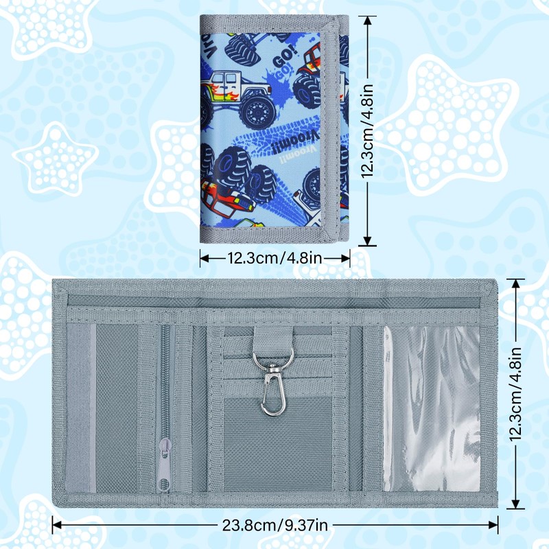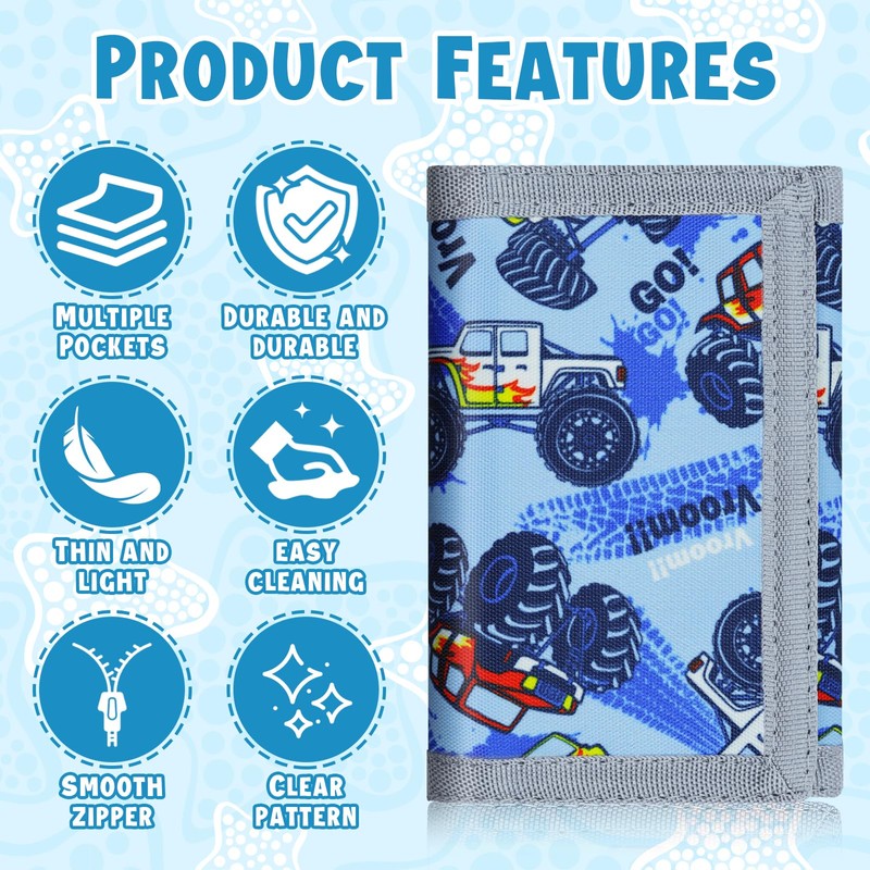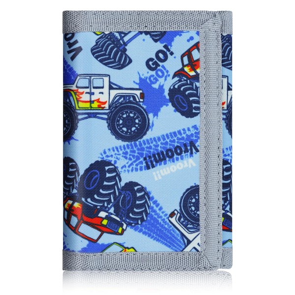 ZHONYEE Teens Cool Wallets for Boys & Girls with Zipper Coin Pocket Card Slot, RFID Trifold Canvas Outdoor Lovely Design Magic Sticker for 12-16 Ages(Truck)