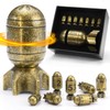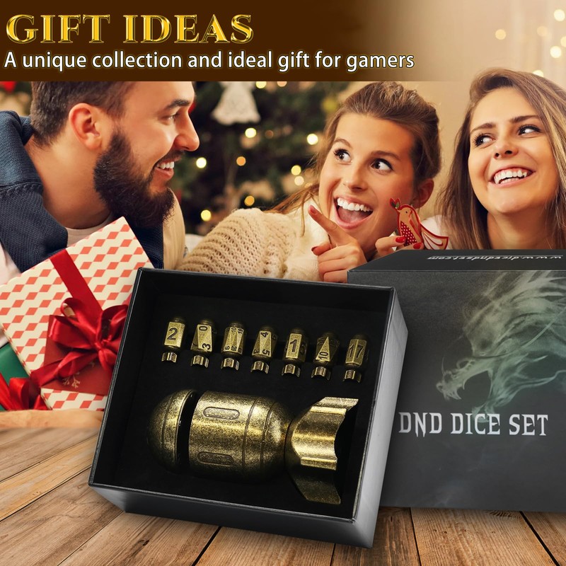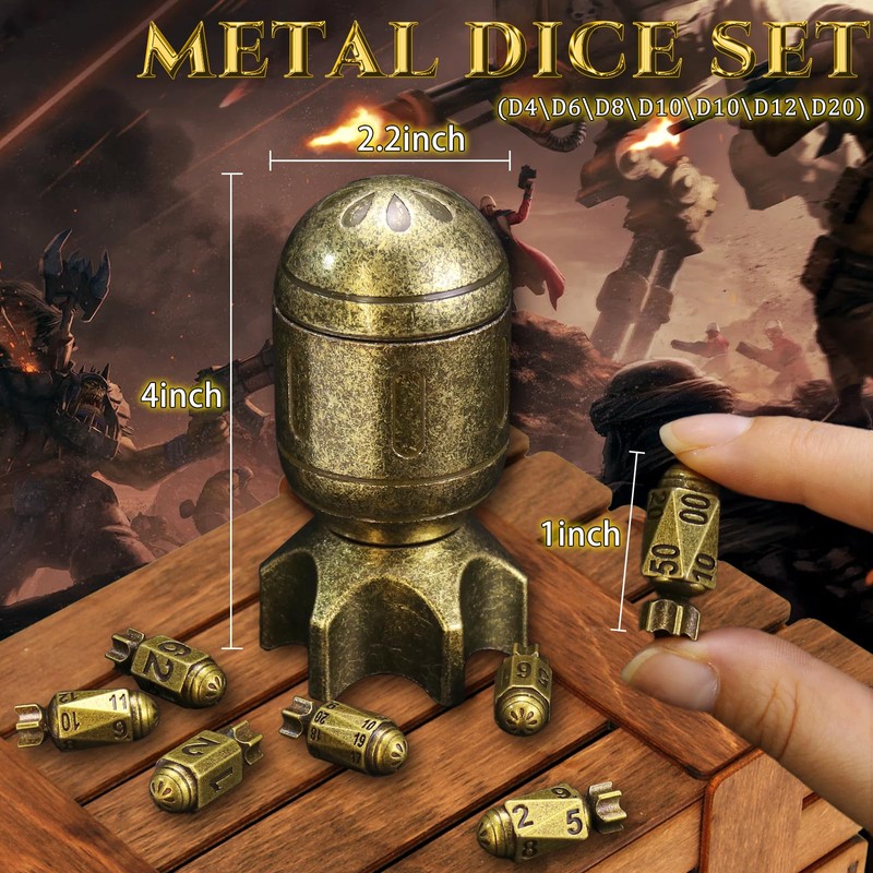ZHOORQI DND Metal Dice Set with Spinning Missile Dice Container, Bullet Dice Cyberpunk Polyhedral Dice for Warhammer 40K, RPG, D&D Gifts(Retro Bronze)