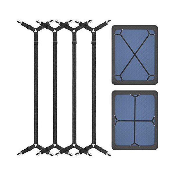 ZHOUBIN Bed Sheet Holder Straps, Adjustable Elastic Crisscross Bed Sheet Fastener Straps Grippers Suspenders for All Bed Sheets, Mattress Covers(2 Set/4Pcs, Black)
