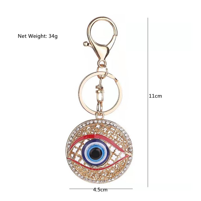 ZHSH Cute Bling Crystal Turkey Eye Keyring with 1 Pcs Sugar Cube Rhinestone Bracelet, Gold Sparkling Alloy Evil Eye Charm Pendant (C1)
