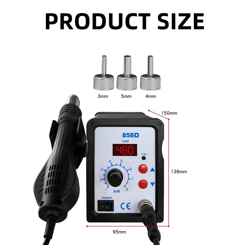 - Wide Application: Our electric desoldering station includes 3 nozzles (3/4/5 mm) to cater to a range of needs, making it suitable for chip removal, professional repairs, cellphone repairs, SMD repairs, and thermal shrinkage applications.