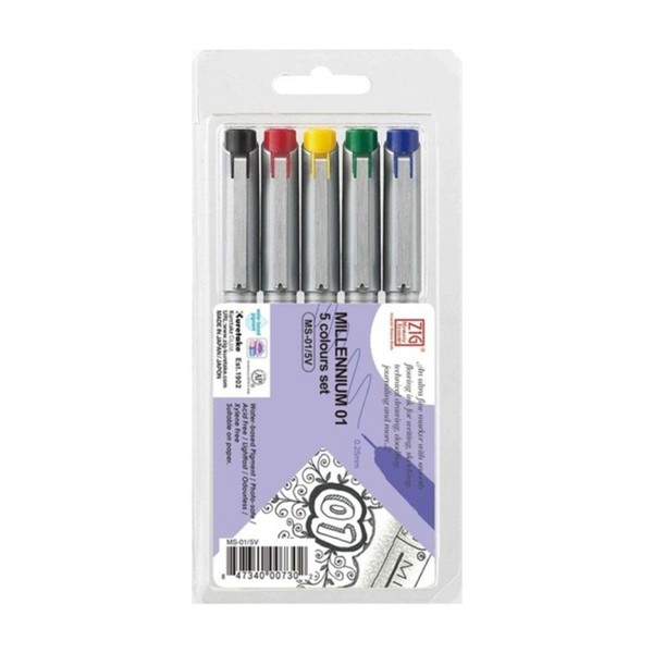 ZIG Millennium Fineliner Drawing Pen Sets - 08 (0.65mm) 5 Pen Set