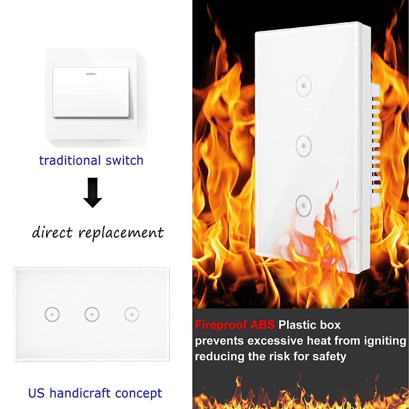 - ⭐ [Multiple protection] Waterproof toughened glass panel, flame retardant material, and new arc-free technology ensure safe and reliable work. LED indicators help you easily position the switch in the dark.