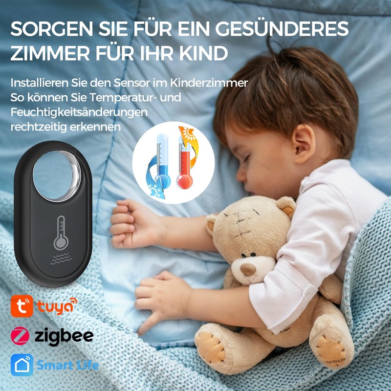 Zigbee Temperatursensor, Digitale Mini Innentemperatur und Feuchtigkeitssensor,Tuya Smart Luftfeuchtigkeitsmesser mit Intelligentem Alarm, Datenspeicherung und Kalibrierung, Kompatibel Alexa/Google