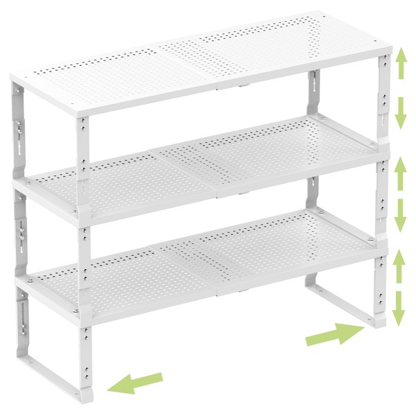 Zilvando Heavy-Duty Adjustable Metal Shelf Organizer - Expandable & Stackable Pantry Storage Rack for Kitchen, Bathroom, RV, Cabinets(3 Packs/White,Medium)
