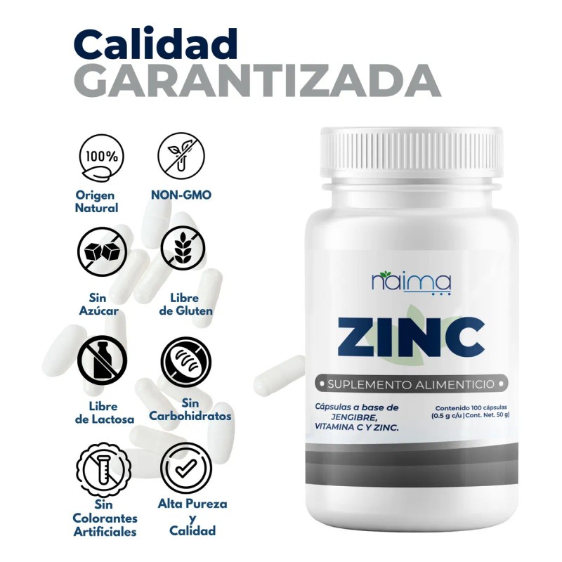 Zinc Con Vitamina C Y Jengibre 500mg - 100 Cáps Por Frasco Sabor Sin Sabor