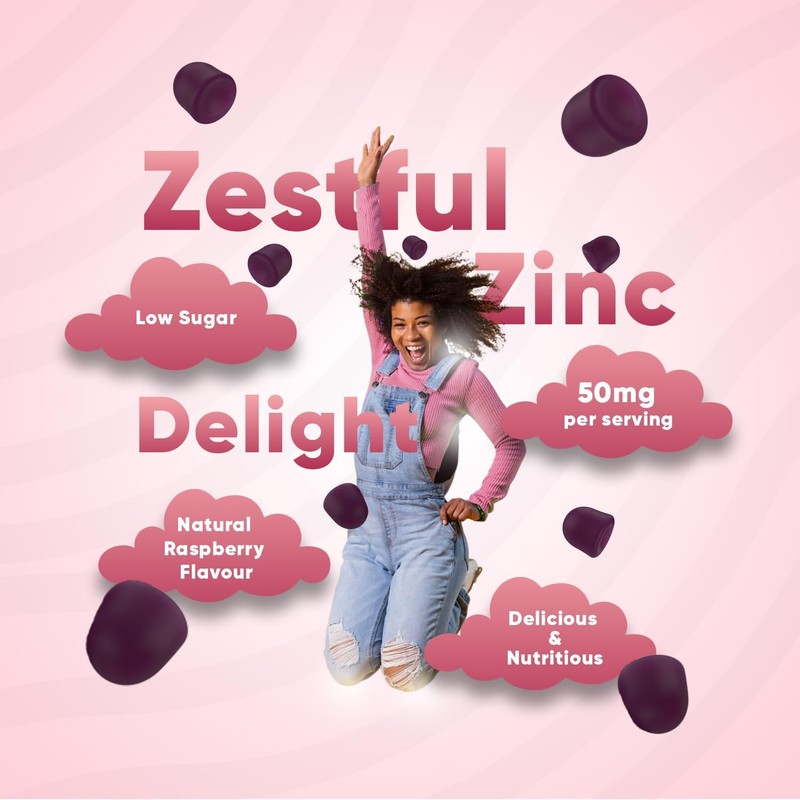Zinc Gummies 50mg - 90 High Strenth Zinc Supplements - Zinc Citrate Gummies with Raspberry Flavour - Not High Strength Zinc Tablets - Zinc for Immunity, Skin, Bone, Vision, Nail & Hair (EFSA)