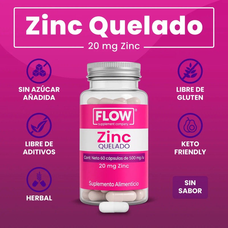 Zinc Quelado 200 Mg 60 Cápsulas De 500 Mg Flow