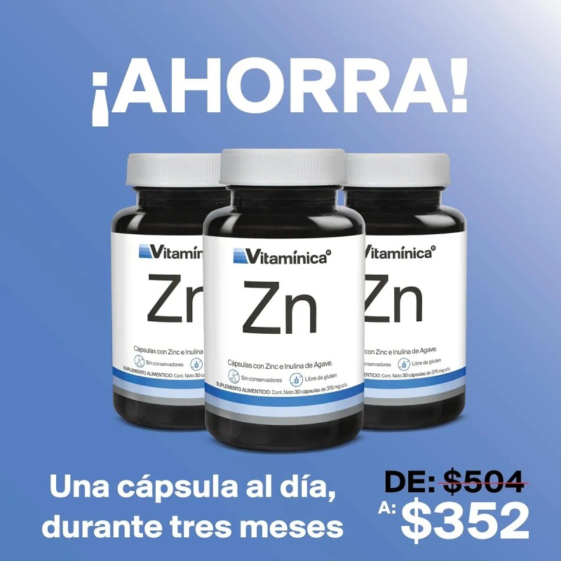 Zinc Vitamínica 3 Pack 90 Cápsulas Para 3 Meses