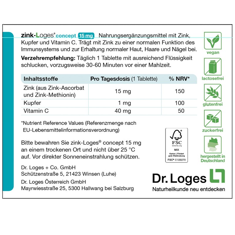 Zink-Loges® concept 15 mg - 30 tablets - for skin, hair, nails, immune system