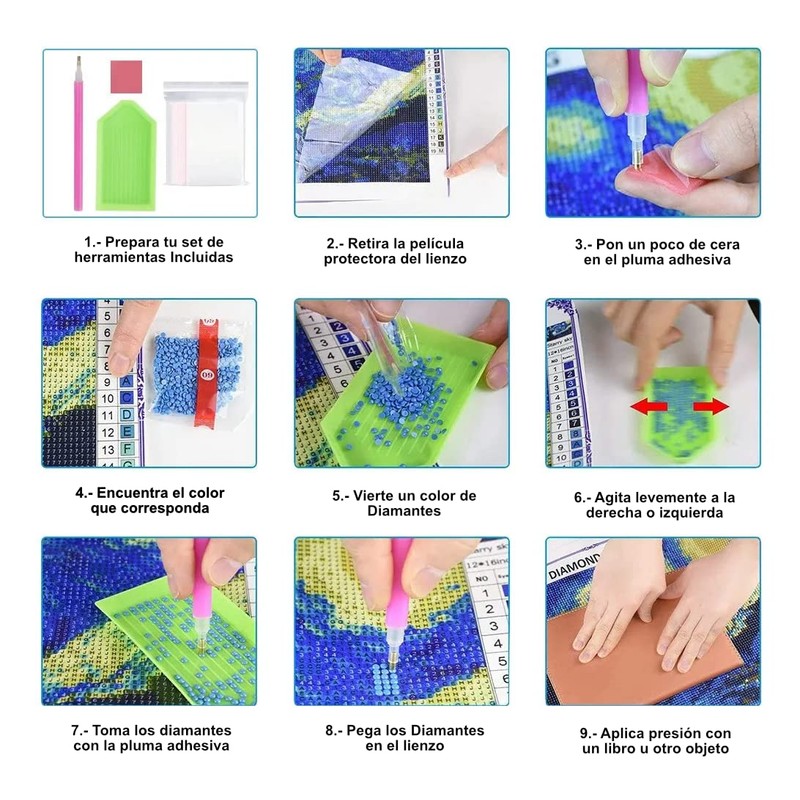 - 【Diamond Painting Kit】: Todos nuestros productos incluyen lo necesario para hacer tu obra de arte, por lo que tu diamond painting kit completo incluyen todos los diamantes necesarios, canastilla plástica, pluma para colocar los diamantes y la cera para colocarlos