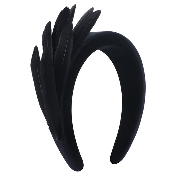Zinniday Women's 1920s Feather Headband - Black Goose Feather Fascinators Fashion Elegant Headband Classic Velvet Headpiece for Women Girls Events and Party