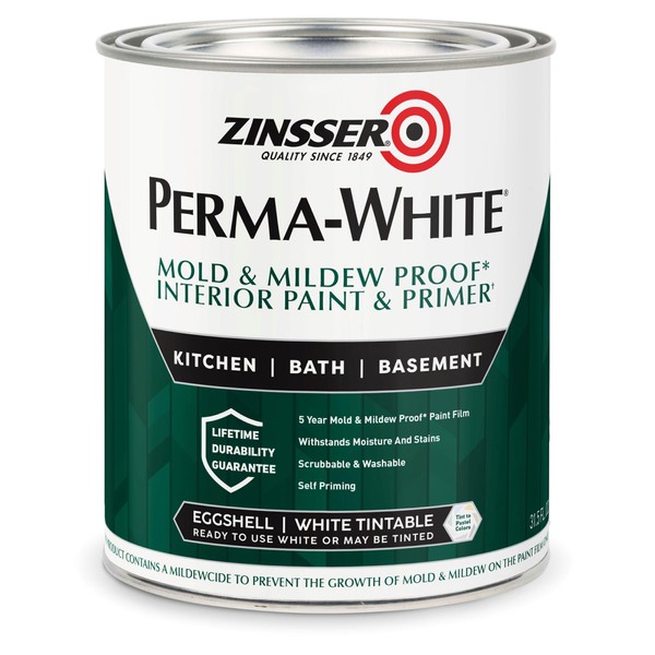 Zinsser 02774 PERMA-WHITE Mold & Mildew Proof Interior Paint, Quart, Eggshell White