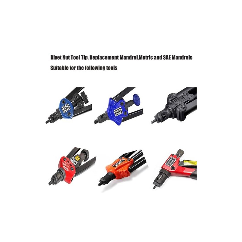 - ZIOJOVK Riveting nut tool Replacement mandrel, metric and SAE mandrel (M3 M4 M5,M6,M8,M10 M12,6-32,8-32, 10-24,1/4-20,5/16-18, 3/8-16, 1/2-13)