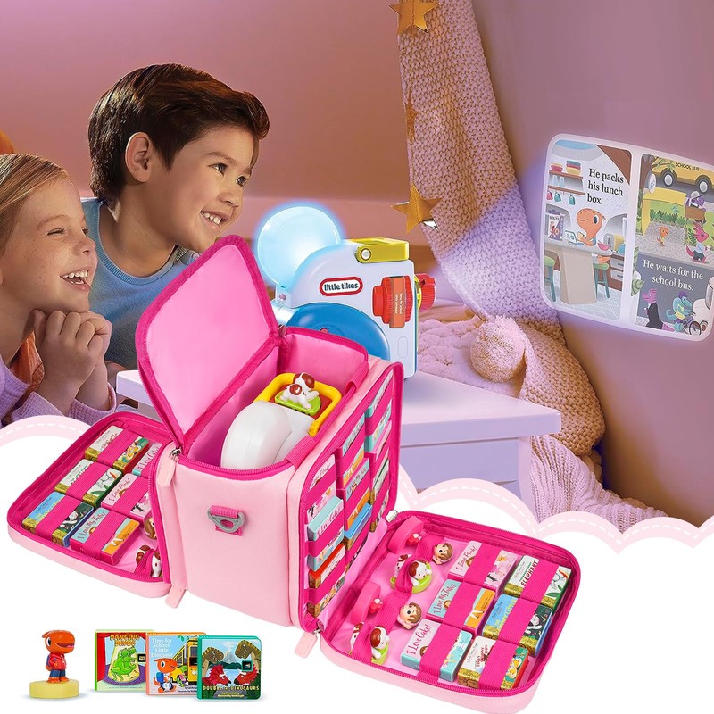 ZIOZERTT ZIOZERTT Carrying Case Compatible with Little Tikes Story Dream Machine Books Starter Set,Portable Storage Bag for Story Books and Character with Handle and Shoulder Strap,Pink,Case Only